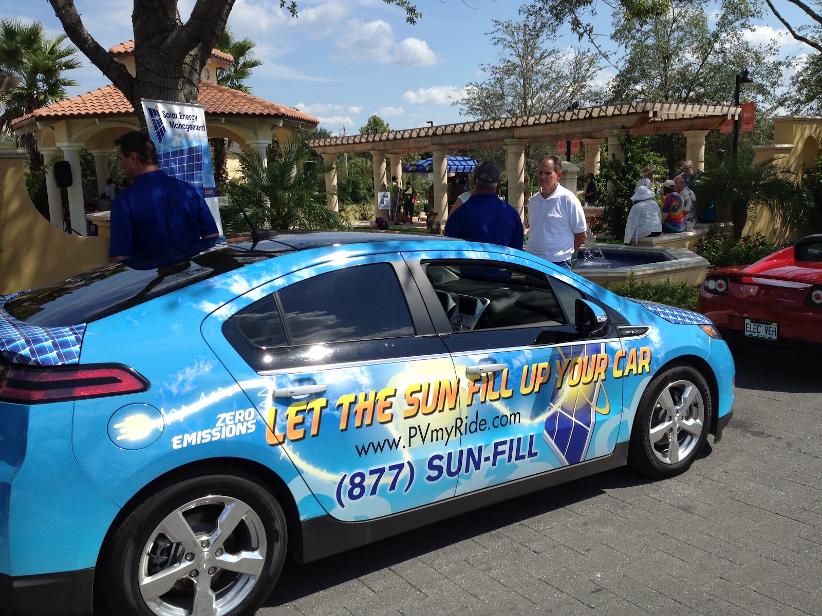 After the parade, the vehicles assumed their position inside our expo venue and displayed their vehicles, answered questions, and let the general public get up close and personal with the next generation of oil-free automobiles. Also on display inside the expo were dozens of green exhibitors, from producers of solar powered charging units, to electric bicycles, and non-profits advocating for the oil-free cause. Additionally, the public was encouraged to participate in the free EV Ride-and-Drive, provided by licensed auto dealers. Six different EV models were available for the Ride-and-Drive, including the Nissan LEAF, Chevy Volt, Mitsubishi Mi-EV, Fisker Karma, Wheego, Tesla Model S (only one in Florida), and the Pedego E-Bike. About 50 people were able to get in the drivers seat and experience the joy of EV driving for themselves!