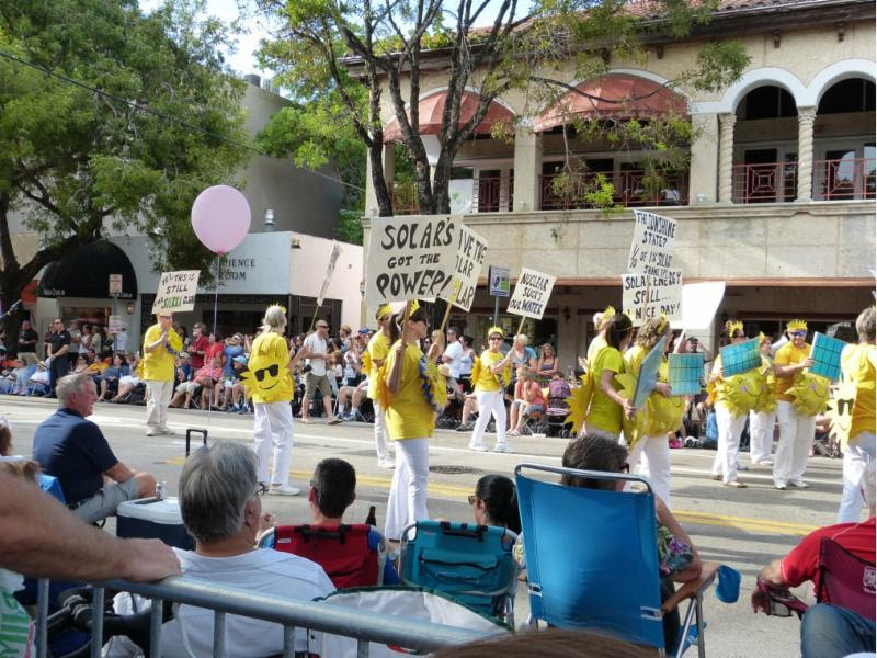 | Suns hold solar panels up to FPL Vampires in Miami parade on Dec. 27, 2015. Photo by Adair |