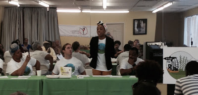 Kina Phillips, another local campaign team leader gave a presentation on the environmental injustice of sugar burning. She described the discriminatory nature the of industry's voluntary burn protocols: The protocols prevent sugarcane burning on days when winds blow toward the more affluent residents of eastern Palm Beach County, but provide no such protections when the winds blow toward the poorer, predominantly African American Glades communities in Western Palm Beach County. She highlighted how Glades residents suffer the most from the effects of sugarcane burning while receiving the least amount of protection.