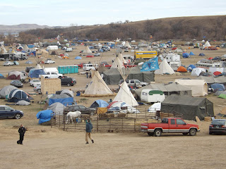 On Dec. 4th there was an announcement of a temporary halt on the pipeline called by the Army Corps of Engineers to potentially resolve the Tribe’s concerns that the earlier permitting decision had not fully considered their interests and route alternatives. This was just after 4,000 veterans had arrived in Standing Rock. There were celebrations in the Water Protectors' camps, yet it seemed to people on the ground to be an orchestrated de-escalation. Those 4,000 vets added to an existing 10,000 people already in camp and this attracted big media coverage. The eyes of the world were focused on Standing Rock where riot ready law enforcement were facing the unarmed military personnel that had come with the mission to protect the right of the Water Protectors to peaceful protest. At the time it seemed that the powers that be could not afford the visual of armed military riot police and DAP'L mercenaries going up against unarmed military and civilians standing in prayer in a setting that often looked and felt more like Gaza than the United States.