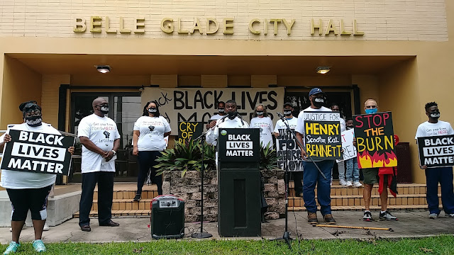BELLE GLADE--On Saturday, November 7, history was made on the steps of Belle Glade City Hall when the Glades community came together to announce the formation of Muck City Black Lives Matter (BLM).  In honor of Henry Bennett III “Scooter,” Belle Glade resident killed by the Palm Beach Sheriff's Office in 2016, Muck City BLM organizers laid out their current focus issues -- local government corruption, voting rights, and responsibilities, economic injustice and exploitation, mass incarceration, police violence, community mentoring for at-risk youth, and environmental racism associated with pre-harvest sugar field burning -- and asked community members to bring their hearts and souls to the fight.  The Cry of Black Youth (COBY) organization started the fight for Black lives from 1969 to 1971 and now the time is right and ripe for Muck City BLM in the Glades. The juxtaposition of the announcement of the Biden-Harris victory on Saturday was noteworthy; the power of the Black vote and the demand for change in the Glades is a reflection of the wider national movement for black lives.